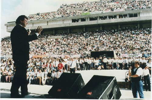 Dr Gammons ministering to a crowd in the Philippines (photo below) estimated at 7 million, in a single service